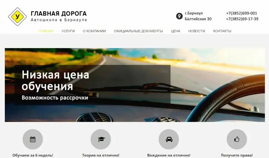 Автошкола «Главная дорога» — это возможность не только быстро, но и эффективно изучить правила дорожного движения. Благодаря персональному подходу к каждому клиенту и современной методике обучения, вы научитесь безопасному вождению. Задача автошколы — не только дать теоретические знания нашим ученикам, но и научить применять их на практике рефлекторно, помочь им преодолеть свой страх и неуверенность за рулем. Пришедший к нам на обучение, попадает в отзывчивый и добродушный коллектив педагогов-профессионалов. С первого занятия опытные инструктора подберут для Вас индивидуальную программу обучения, что особенно актуально для учеников, которые уже имеют опыт вождения. Им не нужно будет начинать с азов. Если же Вы — новичок, то наши инструктора грамотно и профессионально подготовят Вас к первому выезду на дорогу, поведают обо всех нюансах вождения, научат непринужденно и быстро выходить из сложных ситуаций, помогут справиться со стрессом за рулем. На занятиях по первой помощи каждый курсант на специальных манекенах отработает приемы сердечно-легочной реанимации, научится действовать грамотно в случае, если произошло дорожно-транспортное происшествие. Эти занятия пользуются неизменным успехом т.к. любой может стать очевидцем несчастного случая и каждый должен знать что и как необходимо сделать для того, чтобы пострадавший смог дождаться приезда скорой помощи. Наши преподаватели не только подготовят Вас к успешной сдаче экзаменов в ГИБДД, а выработают у Вас навыки, необходимые для реальной автомобильной жизни. По окончании обучения, мы поддерживаем общение с нашими учениками, так что Вы всегда можете рассчитывать на нашу поддержку и помощь. В нашей автошколе Вы станете настоящими асом на дороге! Звоните!