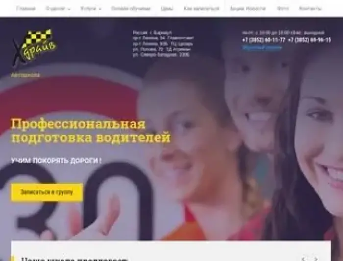 Автошкола «Х-ДРАЙВ» (ООО «Автодрайв Плюс») была основана в 2009 г. автошкола аттестована на соответствие новым требованиям к обучению проверка автошкол gibdd.ru обучение учащихся выпускных классов возраста от 16 лет (сдача экзаменов в ГИБДД с 16 лет) большая материально-техническая база высокое качество предоставляемых услуг и их демократичная стоимость специально оборудованные учебные аудитории для проведения теоретических занятий собственный большой автопарк, в который входят только современные, технически исправные марки автомобилей зарубежного производства Тoyota, Hyundai, Kia, Renault с МКПП и АКПП (левый руль) инструкторы и преподаватели с большим опытом работы и способностью доступно и грамотно передавать знания четко продуманная программа теоретической и высокий уровень практической подготовки, помогающая при сдаче экзаменов в ГИБДД ускоренный курс группы дневного и вечернего обучения группа выходного дня дополнительные уроки вождения гибкая система скидок