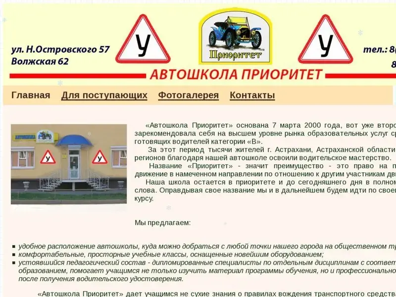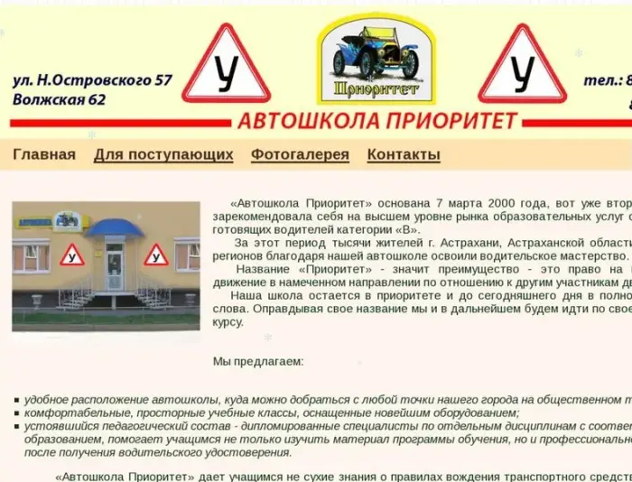 Удобное расположение школы, класс с современным оборудованием. Огромный выбор импортных учебных автомобилей, автодром площадью 5 га. Опытный состав преподавателей и инстукторов, утренние и вечерние группы. Качество обучения является приоритетом нашей автошколы.