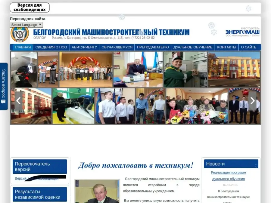 ОГАОУ СПО Белгородский машиностроительный техникум. Подробности по телефону.