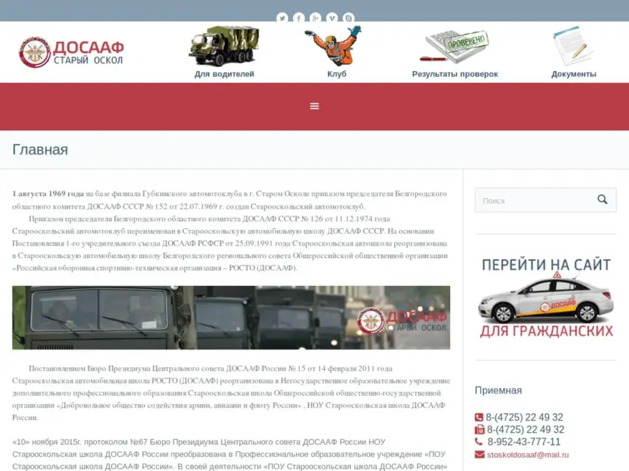 НОУ Старооскольская школа ДОСААФ России. Подробности по телефону.