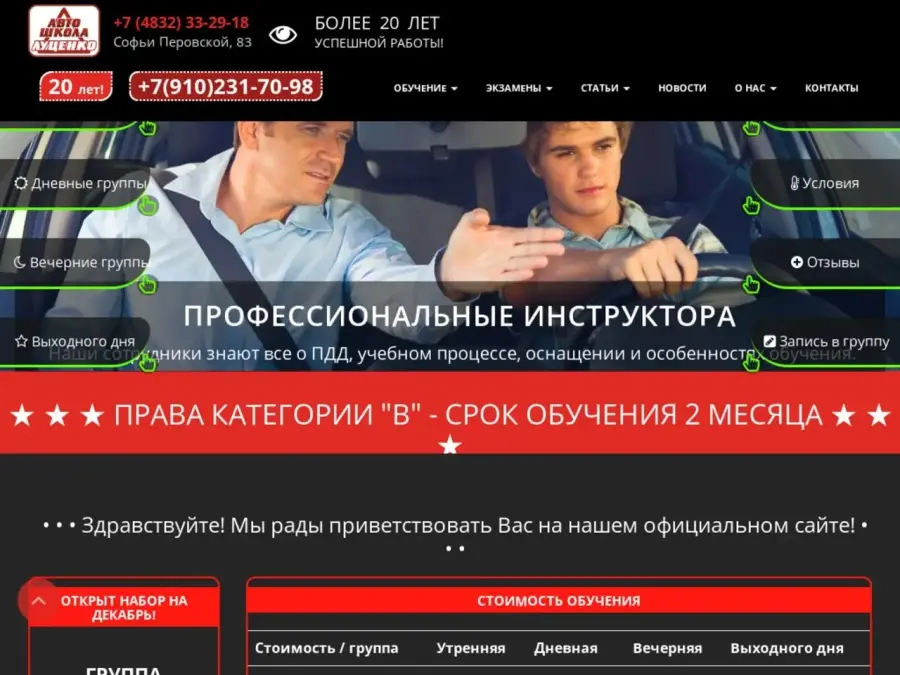 АВТОШКОЛА «Луценко А.А.» в полном объеме проводит теоретические занятия и обучение навыкам вождения автомобиля (категория «В»). Управление автомобилем, особенно в не простых условиях города, требует определенных навыков вождения, твердых знаний Правил дорожного движения, полной уверенности в себе, свободы от страха и комплексов перед дорогой, которая, как известно, полна неожиданностей.