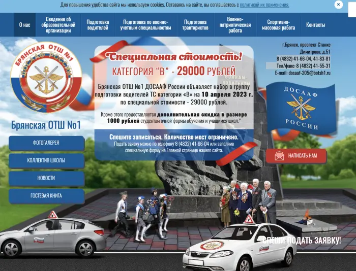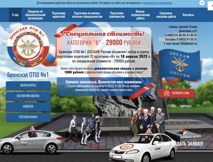 Брянская объединённая техническая школа №1 (БОТШ №1) ДОСААФ России основана в 1948 году, как учреждение для подготовки призывной молодежи к службе в Вооружённых Силах и обучения граждан техническим специальностям. Сегодня в состав учреждения входит авторитетнейшая автошкола Брянска, которая ведет работу по целому ряду направлений. В их число входит: подготовка и переподготовка водителей транспортных средств различных категорий;