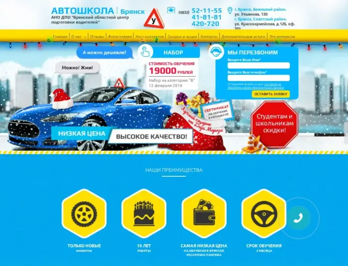 Автошкола имеет свой автодром, хорошо оборудованные учебные кабинеты, большой парк учебных автомобилей, состоящий из новых моделей отечественных и зарубежных производителей. У нас можно пройти ускоренный курс обучения вождению для лиц, имеющих навыки вождения автомобиля, или восстановить утраченные навыки, гибкий график обучения, сдача экзаменов в ГИБДД по месту обучения."