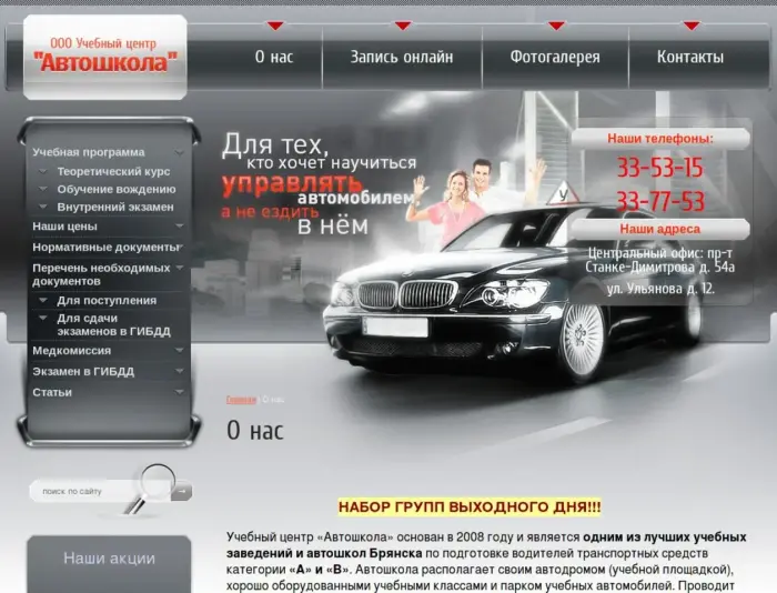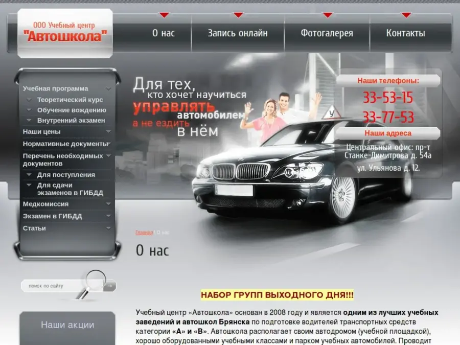 Учебный центр «Автошкола» основан в 2008 году и является одним из лучших учебных заведений и автошкол Брянска по подготовке водителей транспортных средств категории «B». Автошкола располагает своим автодромом (учебной площадкой), хорошо оборудованными учебными классми, парком учебных автомобилей. Проводит обучение водителей категории «В» (легковой автомобиль) и организует сдачу экзамена в ГИБДД на получение водительского удостоверения. Срок обучения составляет 1,5 - 2 месяца (занятия проходят 2-3 раза в неделю).