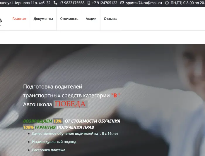 Подготовка водителей транспортных средств категории "B " Автошкола ПОБЕДА