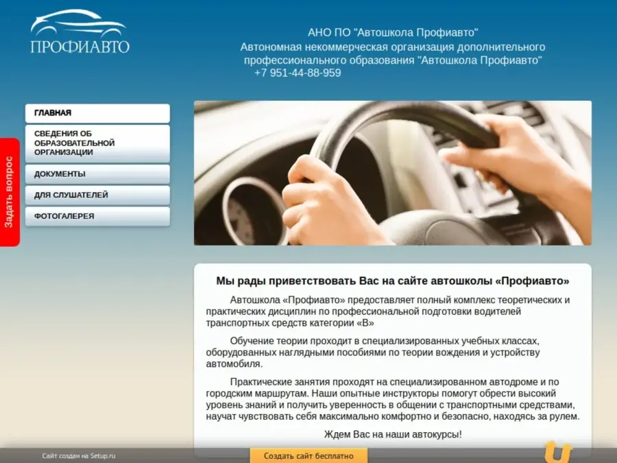 Автошкола «Профиавто» предоставляет полный комплекс теоретических и практических дисциплин по подготовке водителей категорий «В», «С», «Е». Обучение теории проходит в специализированных учебных классах, оборудованных наглядными пособиями по теории вождения и устройству автомобиля. Практические занятия проходят на специализированном автодроме и по городским маршрутам. Наши опытные инструкторы помогут обрести высокий уровень знаний и получить уверенность в общении с транспортными средствами, научат чувствовать себя максимально комфортно и безопасно, находясь за рулем.nЖдем Вас на наши автокурсы!