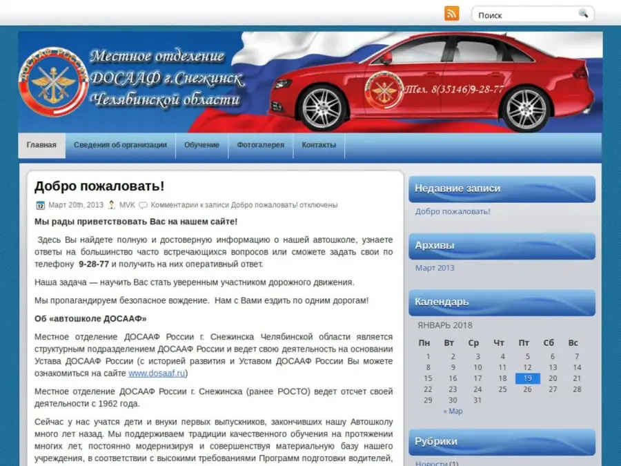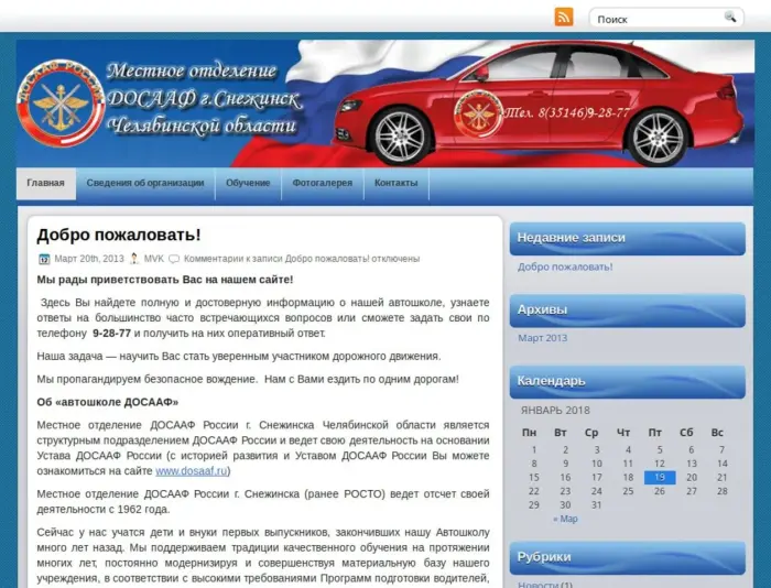 Местное отделение ДОСААФ России г. Снежинска Челябинской области является структурным подразделением ДОСААФ России и ведет свою деятельность на основании Устава ДОСААФ России (с историей развития и Уставом ДОСААФ России Вы можете ознакомиться на сайте www.dosaaf.ru) Местное отделение ДОСААФ России г. Снежинска (ранее РОСТО) ведет отсчет своей деятельности с 1962 года. За этот период на базе Местного отделения подготовлено более 20000 водителей транспортных средств различных категорий. В настоящее время на основании лицензии серии А № 0002212 от 01.03.2012, выданной Министерством образования и науки Челябинской области, Местное отделение ДОСААФ России г. Снежинска имеет право осуществления образовательной деятельности по программам профессиональной подготовки водителей транспортных средств категорий А, В.