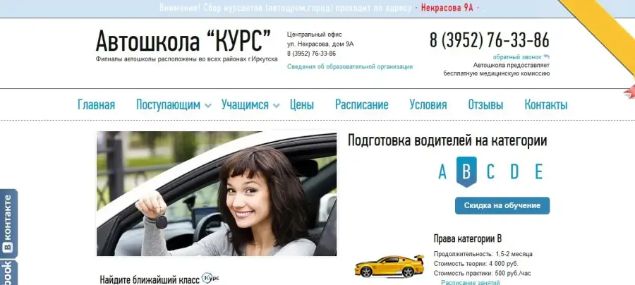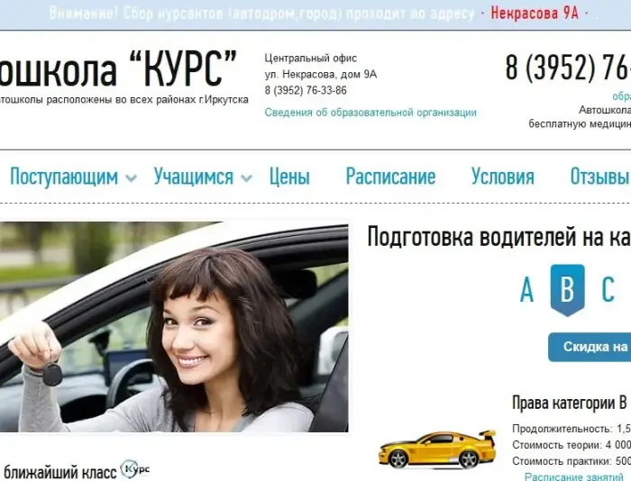 Автодром в центре города на Скв.Кирова., учебные классы во всех районах города. Удобное время обучения. Стандартизированная методика обучения. Коллектив профессионалов.