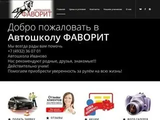 Добро пожаловать в Автошколу ФАВОРИТ Мы всегда рады вам помочь +7 (4932) 36 07 01 Автошкола Иваново Нас рекомендуют родные, друзья, знакомые!!! Действительно учим! Помогаем приобрести уверенность за рулём на всю жизнь!
