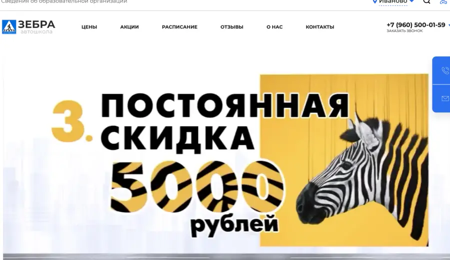«Зебра» — автошкола в г. Иваново, осуществляющая подготовку водителей категорий В. Обучение на права осуществляется в современном учебном центре с участием квалифицированных инструкторов и в полном соответствии с новыми правилами. Каждый желающий, независимо от опыта и возраста, может записаться на наши курсы вождения автомобиля в Иванове и уже через 3 месяца получить водительское удостоверение.
