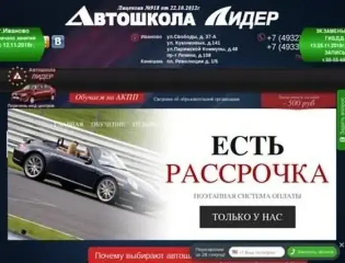«Лидер» - значит «первый», «лучший» Вы не умеете водить автомобиль, но хотите научиться? Стоит ли говорить, что вы планируете стать отличным водителем, ведь от вашего навыка напрямую зависит жизнь — и ваша собственная, и ваших будущих пассажиров? Вы поставили себе верную, а главное, вполне достижимую цель. Умелое владение рулем поможет вам «рулить» и в жизни — вы сможете всюду успеть, больше увидеть. После многих лет пользования городским и междугородним транспортом, счастливый владелец собственного автомобиля понимает, как много он приобрел, насколько легче, ярче и интереснее стала его жизнь. Автошкола «Лидер» предлагает вам оптимальные условия для обучения вождению и получения водительских прав категории В. Доступная цена за курс занятий, высокопрофессиональные преподаватели, честный и ответственный подход к работе — благодаря всем этим критериям школа уже не первый год пользуется высокой популярностью у начинающих водителей.