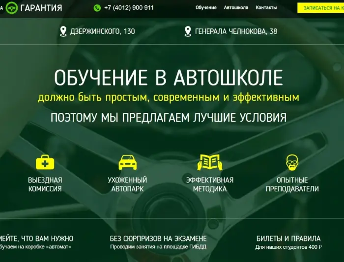 АНО "УЦ Гарантия" предоставляет услуги: медкомиссии, повышения квалификации. Занятия: интенсивные, в выходные, утром, днем, вечером, индивидуальный график Дополнительные услуги: психологическая подготовка, онлайн обучение Автомобили: отечественные, иномарка с АКПП, иномарка с МКПП, переднеприводные, заднеприводные