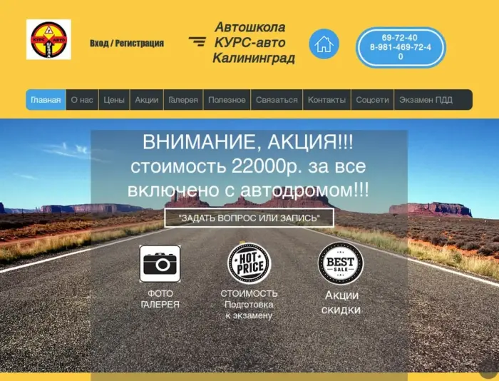 Автошкола «КУРС-авто» предлагает прекрасную возможность преодолеть любые страхи перед дорогой и приобрести навыки по безопасному вождению автотранспорта. У нас вы сможете получить права различных категорий (мотоцикл «А», автомобиль «В»). В нашем распоряжении большая материально-техническая база: новые тренажеры, удобные учебные площадки. Курсы проходят в нескольких комфортном классе. Автошкола «КУРС-авто» – это место, где трудятся инструктора и преподаватели с большим опытом и способностью доступно и грамотно передавать знания. Закрепит теоретический материал, мы предлагаем на нашем транспорте. Автошкола имеет большой парк, в который входят только современные, технически исправные марки автомобилей. Среди всех автошкол г.Калининграда, мы выделяемся высоким качеством предоставляемых услуг и их демократичной стоимостью.