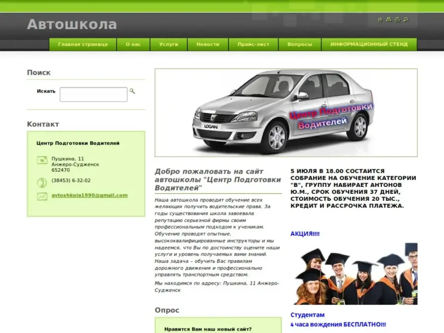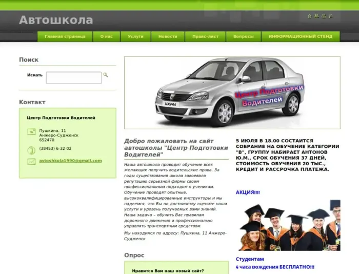 "Наша автошкола проводит обучение всех желающих получить водительские права. За годы существования школа завоевала репутацию серьезной фирмы своим профессиональным подходом к ученикам. Обучение проводят опытные, высококвалифицированные инструкторы и мы надеемся, что Вы по достоинству оцените наши услуги и уровень получаемых вами знаний. Наша задача – обучить Вас правилам дорожного движения и профессионально управлять транспортным средством."