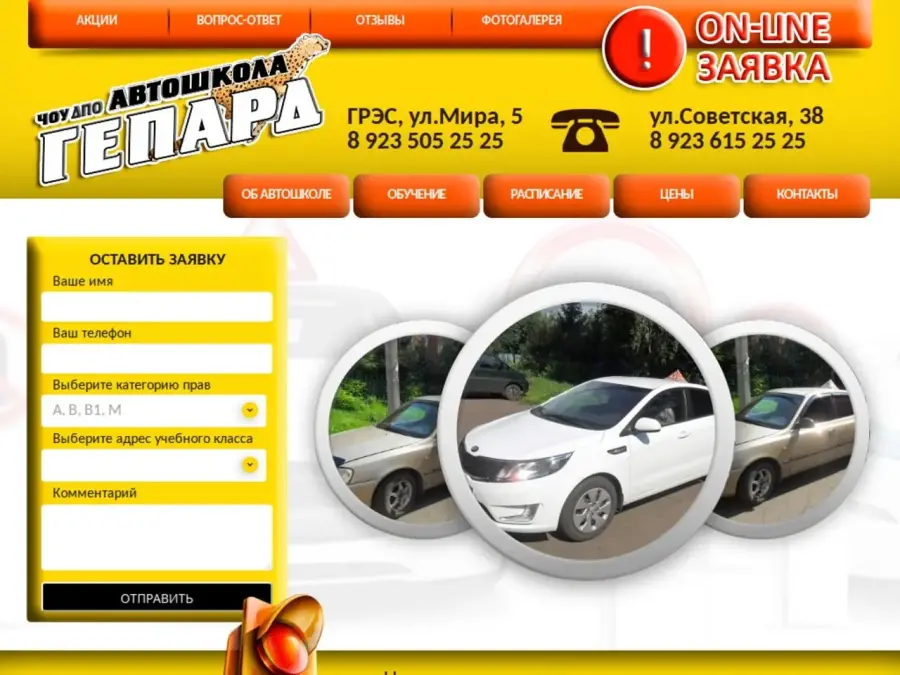 "Выбирая автошколу, ответьте себе на вопрос: на каком уровне Вам нужны навыки управления автомобилем? «Гепард» это прежде всего школа, имеющая профессиональную гордость и свой фирменный стиль - почерк «Гепарда». Показатели говорят сами за себя, безаварийная работа автошколы. Это значит, что выпускники с правами марки «Гепард» не совершали ДТП по своей вине. Вся система «Гепард» построена на интеллекте лучших кадров."
