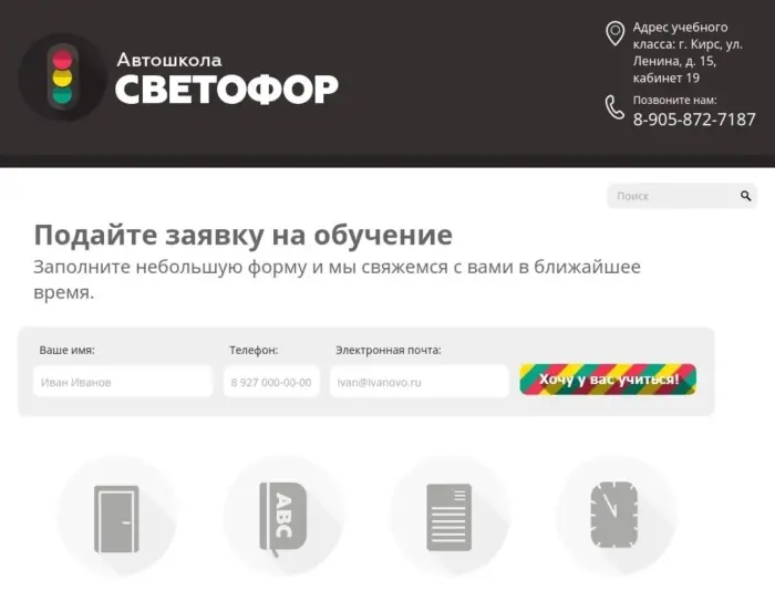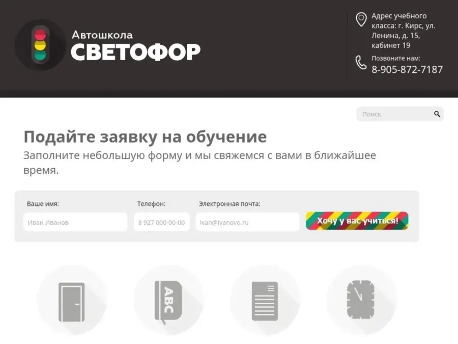 "Наши преимущества: - Высокий процент сдачи экзамена в ГИБДД с первого раза.