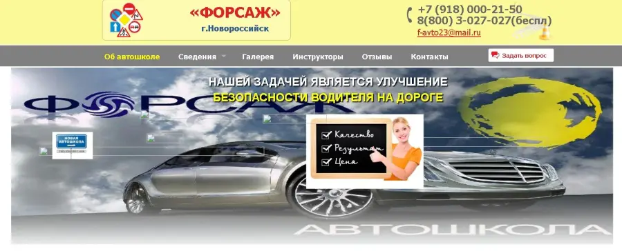 Автошкола "ФОРСАЖ" обучает вождению автомобиля по программе подготовки водителей транспортных средств категории "В". Продуманный теоретический курс обучения в сочетании с уникальной методикой обучения практическому вождению автомобиля рассчитанной на абитуриентов с различными начальными навыками вождения, способствует не только успешной сдаче экзамена в ГИБДД, но и получению стабильных навыков безопасного управления автомобилем.