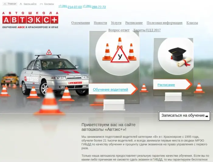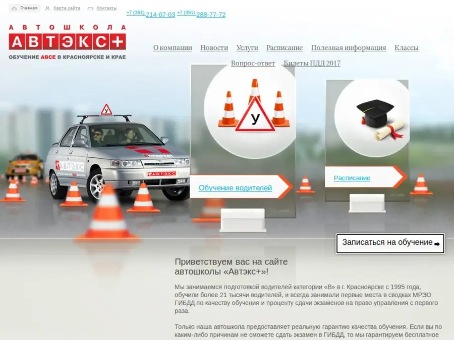 Автономная Некоммерческая Организация Учебно-Производственная Компания «АВТЭКС» создана группой энтузиастов в 1997 году. Абсолютно все пришлось начинать с чистого листа. Основой автопарка являлись автомобили «Москвич-412», «Москвич-2141» и «ВАЗ-2101» АВТЭКС - первая автошкола в Красноярске, которая стала обучать вождению на автомобиле с коробкой-автоматом. Это был автомобиль «TOYOTA» Mark 2 1983 года. Сегодня основу парка учебных автомобилей с механической КПП составляет ВАЗ-2110 и «Лада-Калина». Коробка-автомат представлены автомобилями «TOYOTA», как с правым, так и с левым расположением руля. Первый автокласс, площадью 24 квадратных метров, находился на улице Новосибирской. Обучались водители только категории «В». У истоков «АВТЭКСА» стояли преподаватели Тоц Юрий Рихардович , Батый Владимир Степанович. Пройден достаточно долгий и тернистый путь до одной из самых лучших автошкол г. Красноярска. Стратегия работы автошколы основывается на индивидуальных особенностях каждого поступившего к нам ученика. Современные, уютные автоклассы оборудованы специализированными тренажерами. Автотренажеры имеют те же органы управления, имитируют движение автомобиля. И курсант, впервые севший за руль, не испытывает психологический шок. Когда же, приходит время, перейти на учебный автомобиль, за руль садиться подготовленный, уверенный в своих силах курсант.