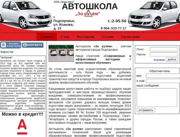 Автошкола «За рулем» располагает самой современной материально- технической базой для реализации образовательных программ профессиональной подготовки (переподготовки) водителей транспортных средств: оборудованный учебный еврокласс в центре города, соответствующая предъявляемым требованиям закрытая площадка для отработки первоначальных навыков вождения, новые учебные автомобили марки Renault Logan, а также учебный автомобиль премиум класса – Nissan Juke. Коллектив автошколы сделает процесс обучения для Вас максимально комфортным - теоретическое обучение осуществляется в вечерних группах, а также в группах выходного дня; практическое обучение вождению осуществляется в удобное для обучающихся время, в том числе в выходные дни. Автошкола «За рулем» имеет всё и чуть-чуть больше для эффективного обучения! Наше главное правило – «Правила дорожного движения – закон жизни!»