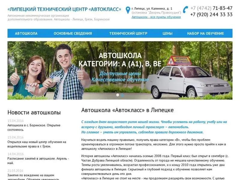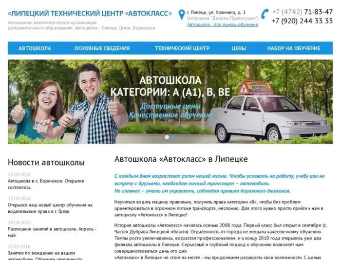 «Автокласс» – автошкола в Липецке, которая предлагает курсы вождения автомобиля на высоком уровне. Мы располагаем собственным автопарком, вся техника находится в исправном состоянии. Практические уроки вождения проходят с использованием новых автомобилей, что гарантирует вашу безопасность в процессе подготовки к сдаче экзамена пдд. У нас работают только очень опытные автоинструкторы, которые осуществят теоретическую подготовку и проведут для вас практические уроки вождения. Обучение у нас позволит не просто получить права категории в и с легкостью сдать экзамен пдд, а научиться водить качественно и чувствовать себя на дороге максимально уверенно. Окончив курсы вождения в нашей автошколе в Липецке, вы будете готовы к встрече со сложными ситуациями на дороге. Начинающий водитель должен не просто получить права, но и приобрести навыки, должен быть психологически готов к сюрпризам на улицах города, ведь от каждого водителя зависят человеческие жизни. Комплексный подход к обучению и качество — вот основные принципы нашей работы.