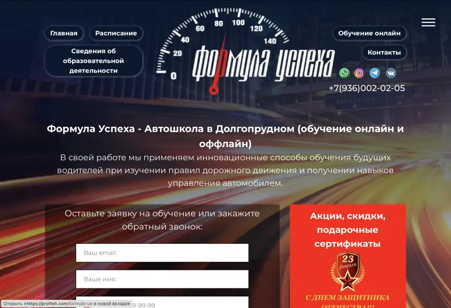 Формула Успеха - Автошкола в Долгопрудном (обучение онлайн и оффлайн)Акции, скидки, подарочные сертификатыВ своей работе мы применяем инновационные способы обучения будущих водителей при изучении правил дорожного движения и получении навыков управления автомобилем.