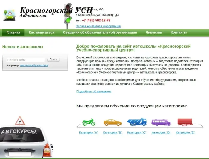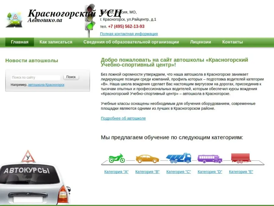 Красногорский учебно-спортивный центр старейшая автошкола в городе, ведет отсчет своей деятельности с 1966 года.