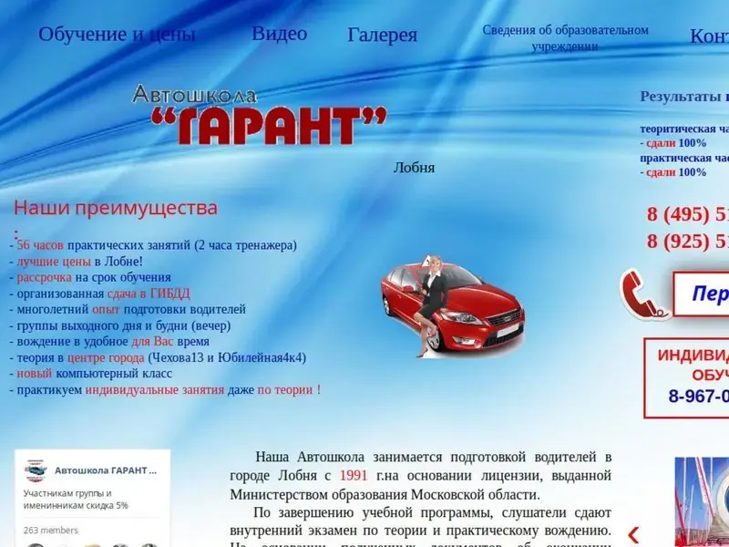 "Наша Автошкола занимается подготовкой водителей в городе Лобня с 1991 г. на основании лицензии, выданной Министерством образования Московской области. Мы представляем автошколу в Лобне, которая сочетает в себе большой опыт (в сфере подготовки водителей различных категорий с 1983 года), высокий профессионализм преподавателей как по теоретическому курсу, так и по практическому вождению."