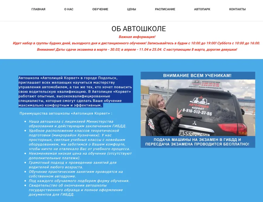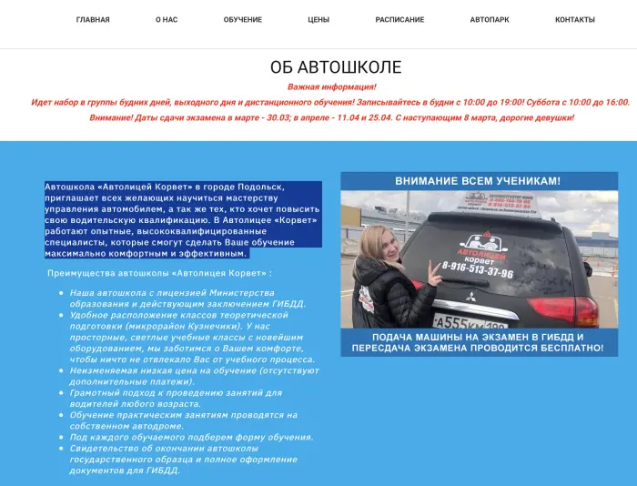 Автошкола «Автолицей Корвет» в городе Подольск, приглашает всех желающих научиться мастерству управления автомобилем, а так же тех, кто хочет повысить свою водительскую квалификацию. В Автолицее «Корвет» работают опытные, высококвалифицированные специалисты, которые смогут сделать Ваше обучение максимально комфортным и эффективным.