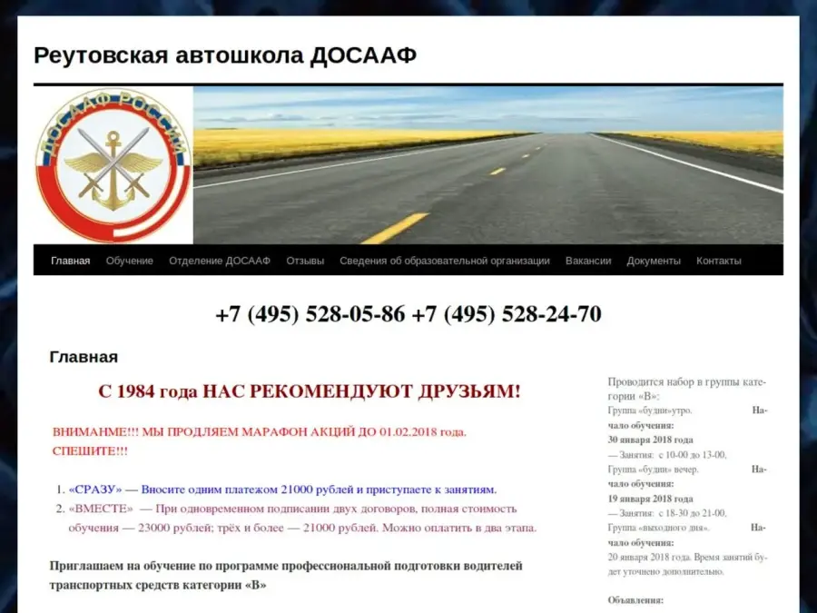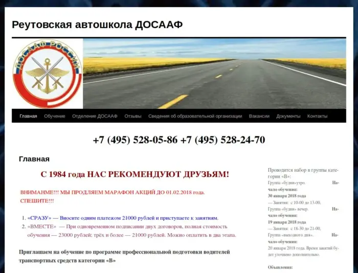 Обучение в ДОСААФ, автошколе в городе Реутов— это великолепный базис для безопасного и грамотного вождения. С первого дня самостоятельной езды выпускники автошколы ДОСААФ чувствуют себя за рулем уверенно, ведь все необходимые для этого навыки у них уже есть. Более того, инструкторы автошколы ДОСААФ готовят учащихся не только к езде по правилам, но и к реальной дорожной ситуации. Иными словами, в автошколе ДОСААФ учат не сдавать экзамен — здесь учат именно ездить.