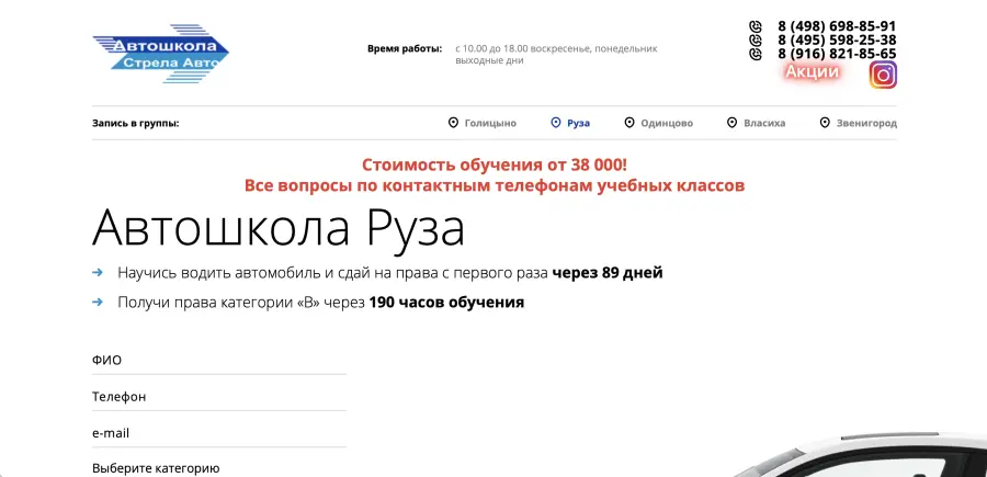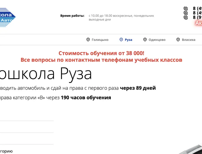 Автошкола Руза Научись водить автомобиль и сдай на права с первого раза через 89 дней Получи права категории «В» через 190 часов обучения