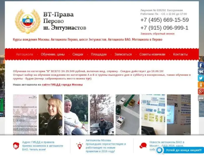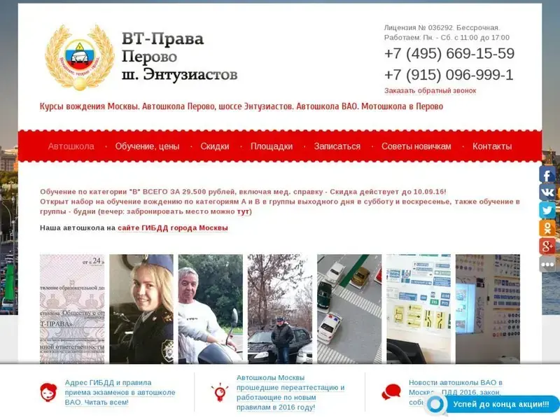 - Свободный график обучения. Более подробную информацию Вы можете узнать на нашем официальном сайте: www.vtprava.ru