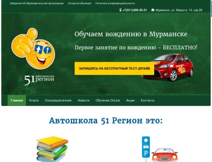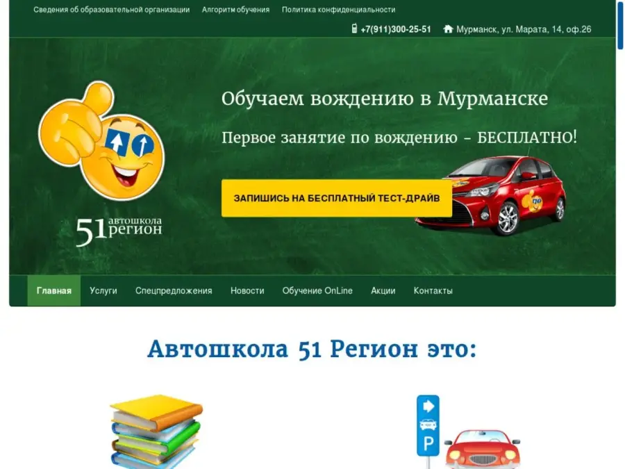 Автошкола «51 Регион» это – лицензированный центр профессиональной подготовки водителей категории «В». К Вашим услугам автопарк из новых автомобилей с механической коробкой передач: TOYOTA YARIS, DAEWOO NEXIA, HYUNDAI ELANTRA и HYUNDAI ELANTRA с автоматической коробкой передач.