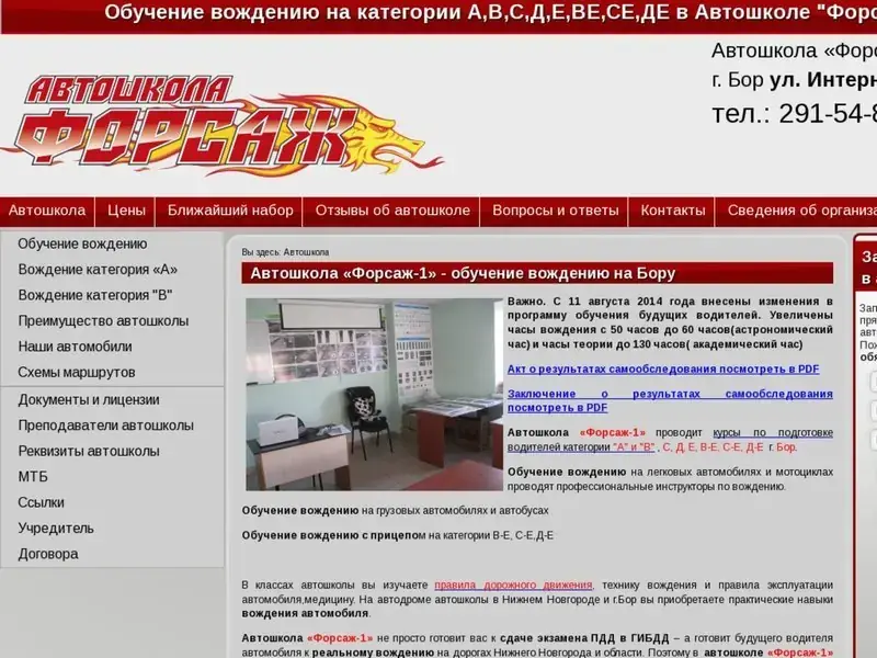 Автошкола «Форсаж-1» не просто готовит вас к сдаче экзамена ПДД в ГИБДД – а готовит будущего водителя автомобиля к реальному вождению на дорогах Нижнего Новгорода и области. Поэтому в автошколе «Форсаж-1» г. Бор довольно интересно учиться. Вы должны научиться водить автомобиль в соответствии с ПДД без аварий, штрафов ГИБДД и прочих неприятностей. Вождение автомобиляУчеников борской автошколы ждут нешуточные затраты времени. И это оправдано, так как на кону ваша жизнь. Дорога не шутит с нами, забирая ЕЖЕДНЕВНО по СТО человеческих жизней! Любые затраты на обучение вождению меркнут по сравнению с ценой, которую приходится платить за право передвигаться на автомобиле.