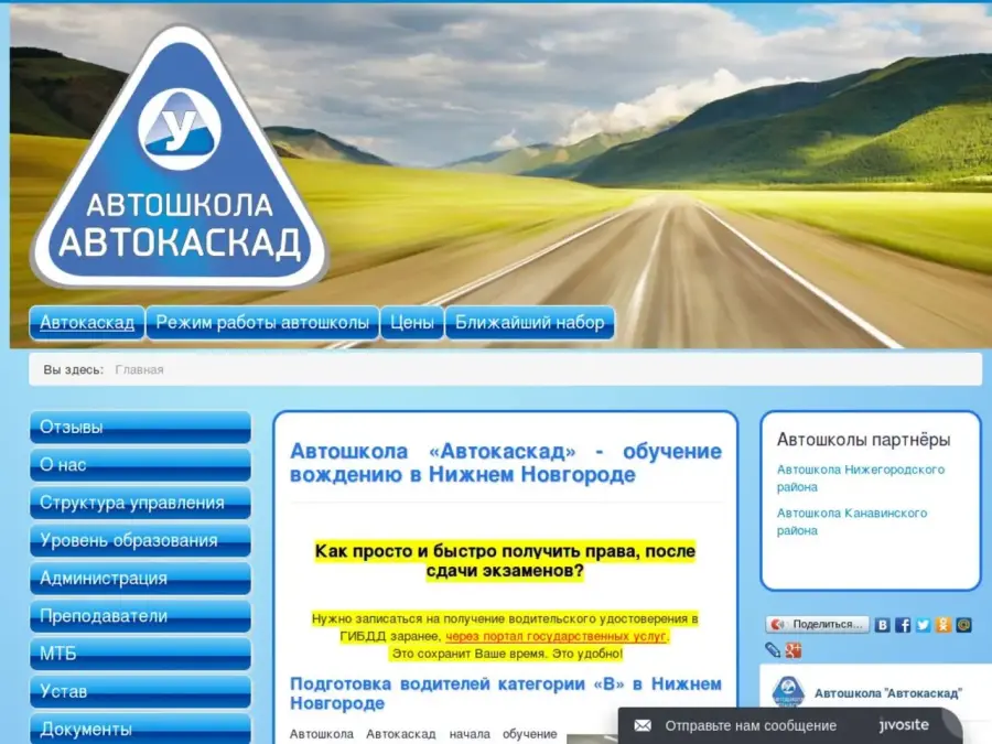 Автошкола Автокаскад начала обучение вождению в Нижнем Новгороде 16 апреля 2009 года, когда была получена первая лицензия на право осуществления образовательной деятельности по подготовке водителей категории "В". Курсы по вождению автомобиля в Нижнем Новгороде предоставляют многие автошколы НН. Существует большое количество рейтингов нижегородских автошкол. Не каждый рейтинг автошкол в Нижнем Новгороде отличается объективностью. Оценить автошколу и выбрать правильную автошколу можно по динамике её развития. Если автошкола развивается, открывает новые филиалы, значит, курсы по вождению этой автошколы пользуются спросом. Значит, выпускники автошколы научились водить автомобиль и рекомендуют эту автошколу своим знакомым.