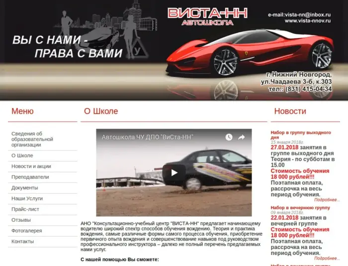 ЧАСТНОЕ УЧРЕЖДЕНИЕ ДОПОЛНИТЕЛЬНОГО ПРОФЕССИОНАЛЬНОГО ОБРАЗОВАНИЯ "ВиСта-НН" проводит обучение водителей категории "В" (легковой транспорт) и организует сдачу экзаменов в ГИБДД. Обучение проводится в течение 3 месяцев. За это время в полном объеме, в соответствии с требованиями ГИБДД, преподается теоретический и практический курсы. Обучение проводят опытные преподаватели с многолетним стажем работы. Умение управлять автомобилем и знание Правил дорожного движения откроет для Вас новый мир - мир без границ.