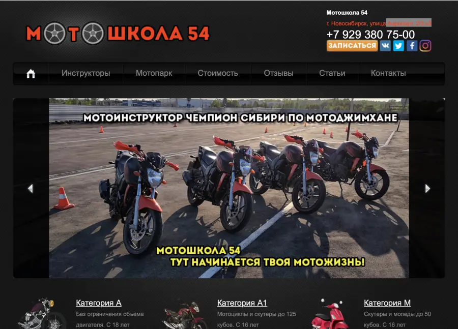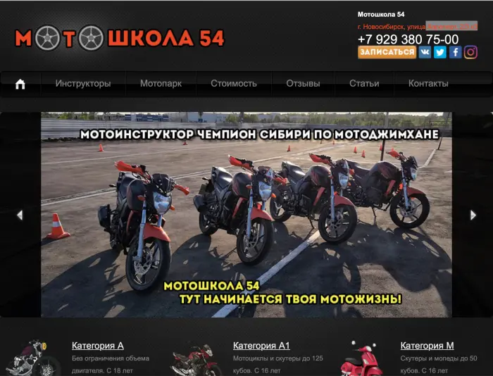 У нас есть крытый мотодром, для обучения вождению мотоцикла в зимнее время! В нашей мотошколе новые мотоциклы, новый мотодром. Мотоинструктор чемпион Сибири по МотоДжимхане. Наша мотошкола занимается профессиональной подготовкой водителей мотоциклов, на категорию А.