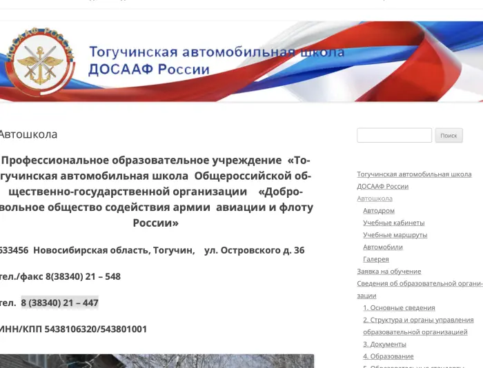 Профессиональное образовательное учреждение «Тогучинская автомобильная школа Общероссийской общественно-государственной организации «Добровольное общество содействия армии авиации и флоту России»