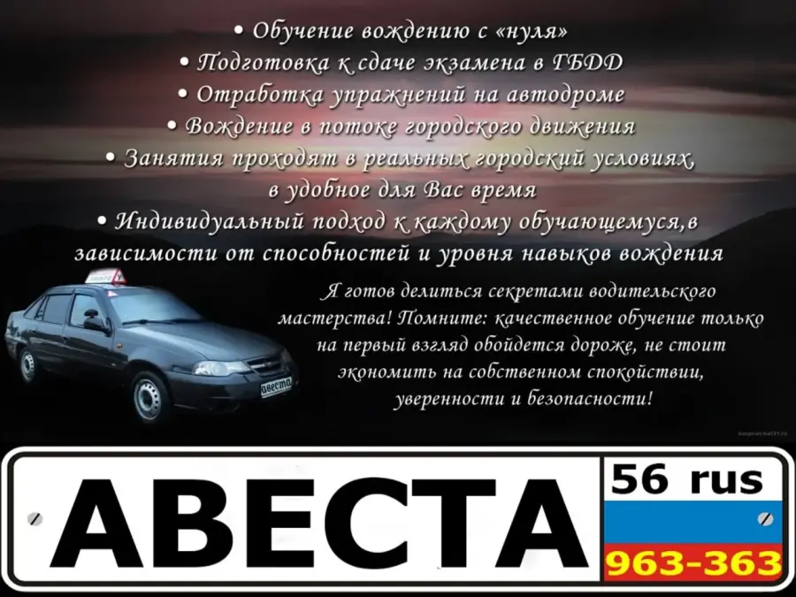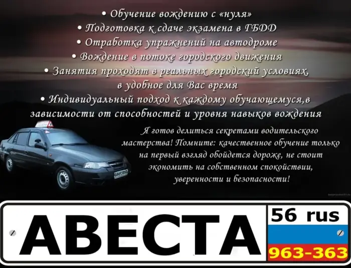 Учебный Центр "АВЕСТА" - предлагает Вам комплекс услуг связанных с управлением автомобилей: - проводит обучение водителей транспортных средств;