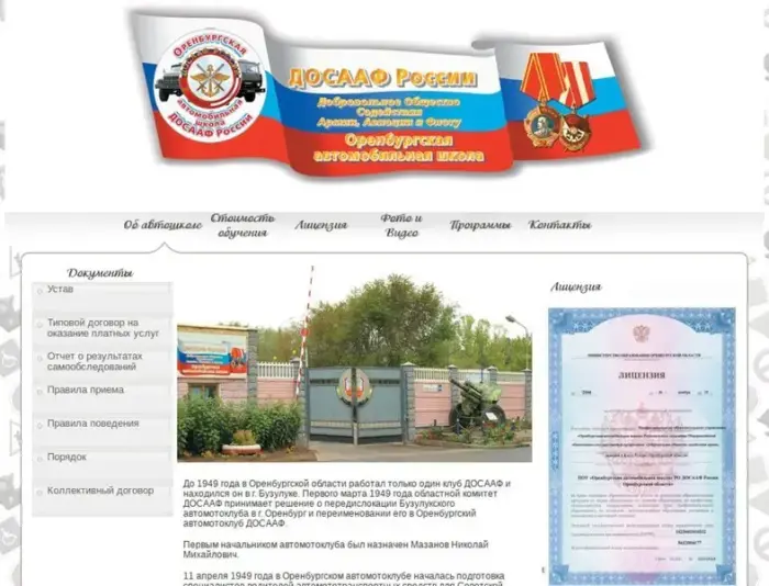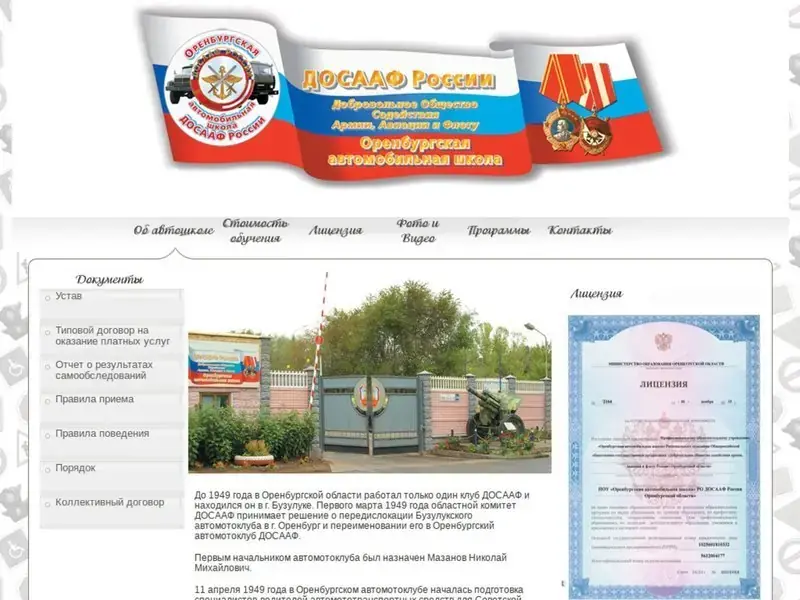 Оренбургская автомобильная школа ДОСААФ России имеет длинную и богатую историю, которая тянется уже с 1949 года. За это время был накоплен огромный опыт в подготовке водителей различных категорий. Школа не раз занимала первые места в различных конкурсах, проходящих по всей России. И в настоящее время оренбургская автошкола ДОСААФ России также занимает передовые позиции в деле подготовки водительских кадров. - Категория «A», «B», «C», «CE» - Переподготовка с категории «C» на категорию «B»; с категории «B» на категорию «C», с категории «C» на категорию «D». Также автошкола занимается подготовкой водителей по перевозке опасных грузов, по техническому минимуму, подготовкой мастеров производственного обучения вождению, преподавателей, водителей маломерного судна и гидроциклов.