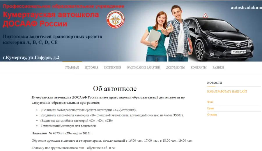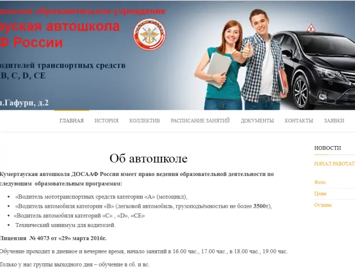 Кумертауская автошкола ДОСААФ России имеет право ведения образовательной деятельности по следующим образовательным программам: «Водитель мототранспортных средств категории «А» (мотоцикл), «Водитель автомобиля категории «В» (легковой автомобиль, грузоподъёмностью не более 3500т),