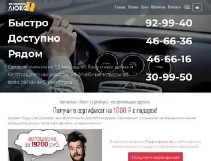 Автошкола «Люкс» проводит обучение вождению в Оренбурге, мы с удовольствием не только поможем вам сдать на права в Оренбурге, но и обеспечим приятное, качественное обучение вождению. Мы не ищем конкурентных преимуществ по сравнению с другими автошколами Оренбурга, мы просто научим вас водить автомобиль и предлагаем вам: - обучение без предварительного взноса;