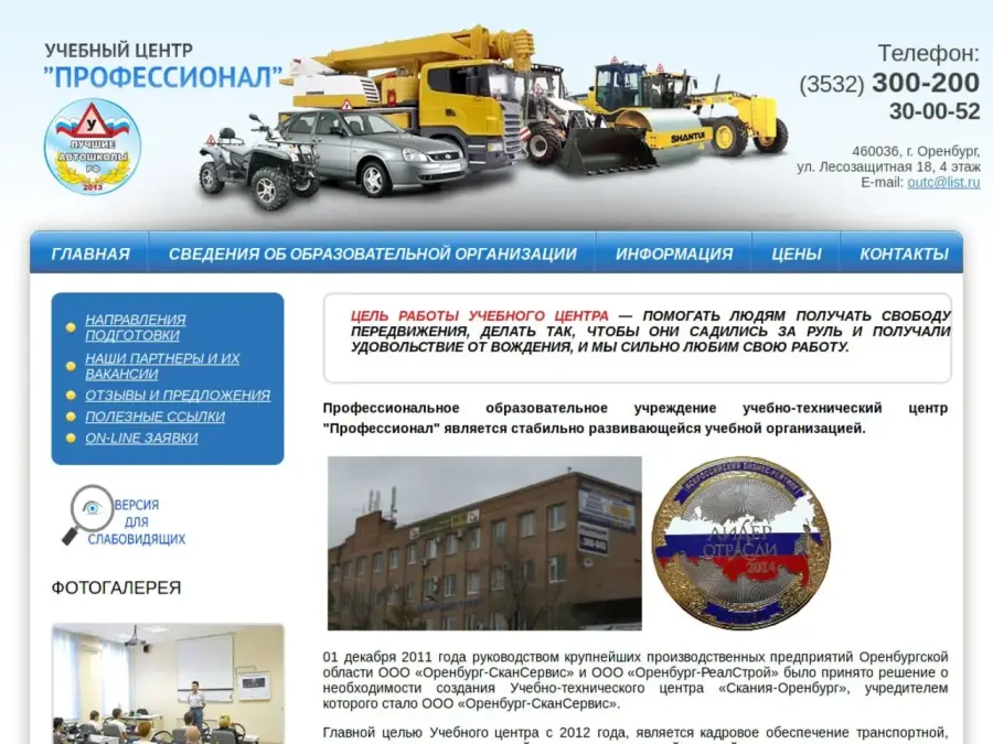 Внедрение новейших технологий обучения в образовательный процесс позволяют организовать и сформировать качественную подготовку специалистов и рабочих: по организации перевозок и безопасности движения на автомобильном и городском транспорте; по вопросам безопасности перевозки опасных грузов; организаций поднадзорных Федеральной службе по экологическому, технологическому, и атомному надзору; организаций поднадзорных инспекции Гостехнадзора (трактористов и машинистов самоходных машин); специалистов и рабочих предприятий лесного хозяйства. Учебно – технический центр «Профессионал» располагает развитой материальной, информационной и технической инфраструктурой, современно оборудованными аудиториями. Активное внедрение компьютерных и обучающих технологий, тренажеров по оказанию первой медицинской помощи и симуляторов экскаватора и сочлененного самосвала с подвижной платформой обладающих оптимальными технико – эксплуатационными показателями, взаимодействие со многими учебными заведениями и открытие новых, востребованных профессий делает учреждение престижным и успешным.