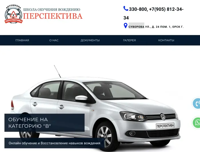 Автошкола «Перспектива» осуществляет профессиональную подготовку водителей категории "B". Обучение включает в себя занятия по теории и практике.