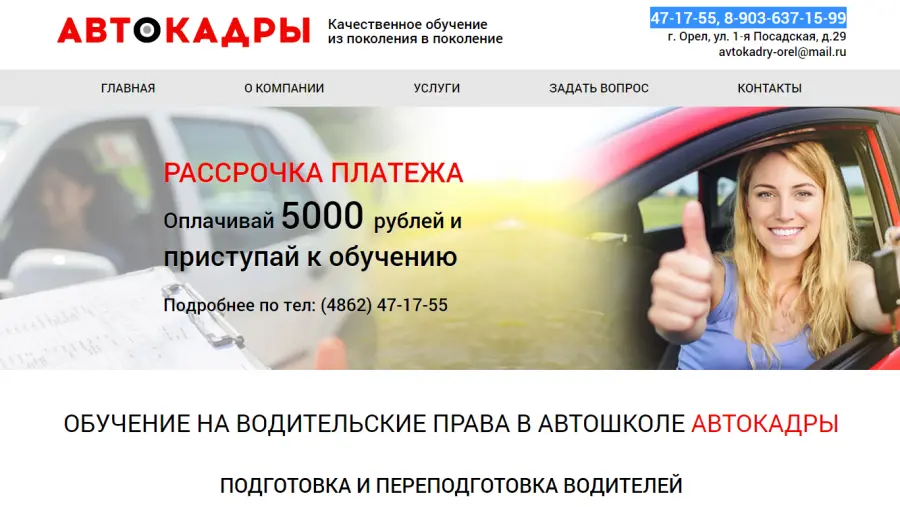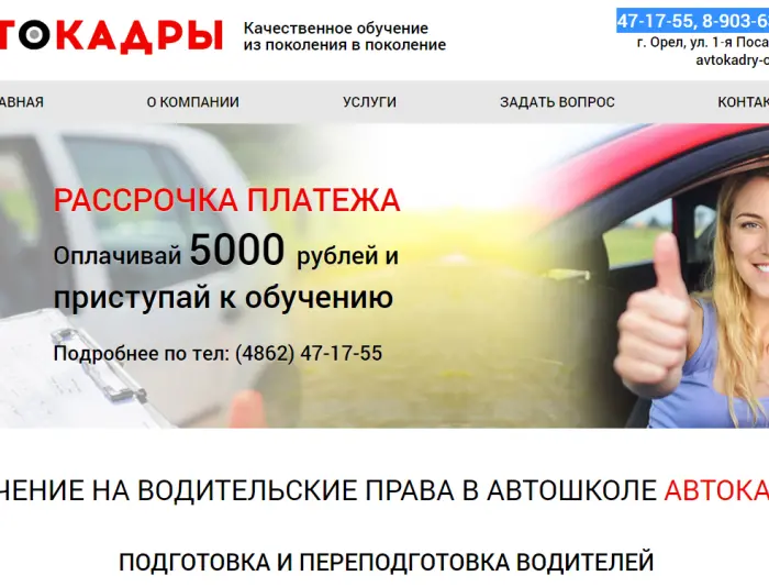 В 1968 году организация переехала из Торговых рядов на улице Гостиная, где она располагалась ранее, на ул.1-я Посадская, где и находится до сих пор. За годы, прошедшие с момента создания автошколы в Орле, ею были подготовлены тысячи квалифицированных автокадров. Именно поэтому для нашего акционерного общества и было выбрано название «Автокадры».
