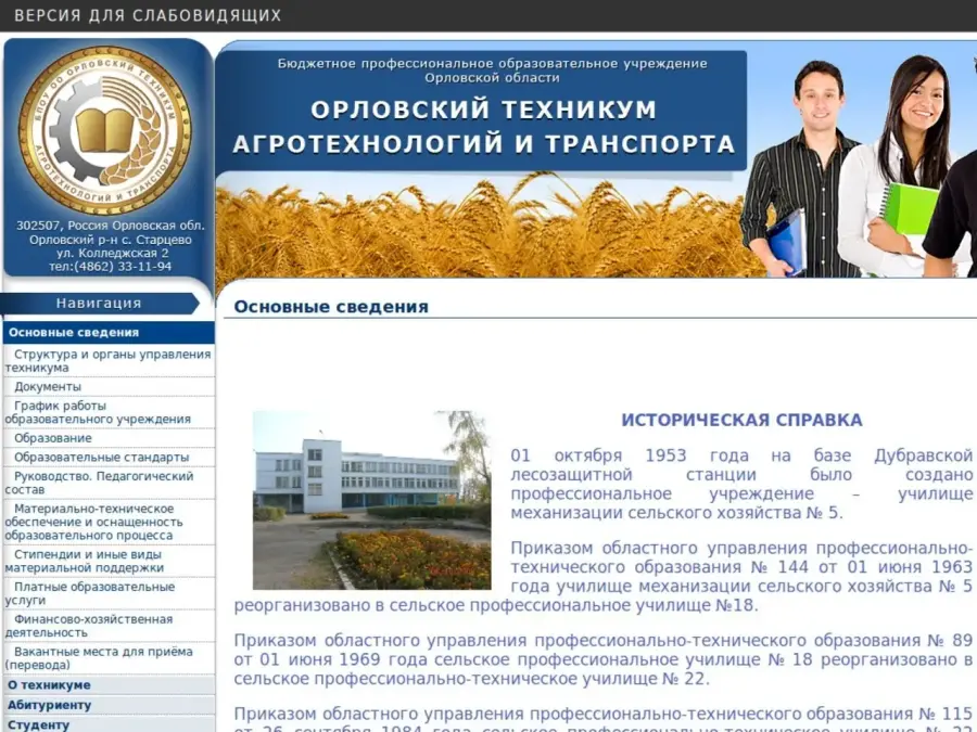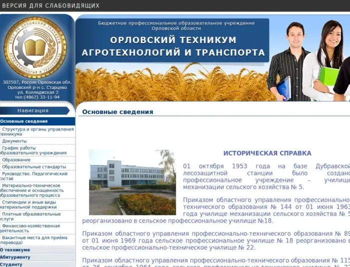 бюджетное образовательное учреждение Орловской области среднего профессионального образования «Орловский техникум агротехнологий и транспорта» (бывш. Проф.лицей №22)