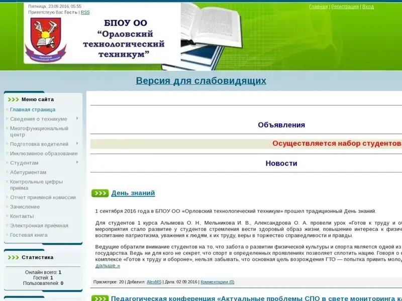 Бюджетное образовательное учреждение Орловской области среднего профессионального образования «Орловский технологический техникум»