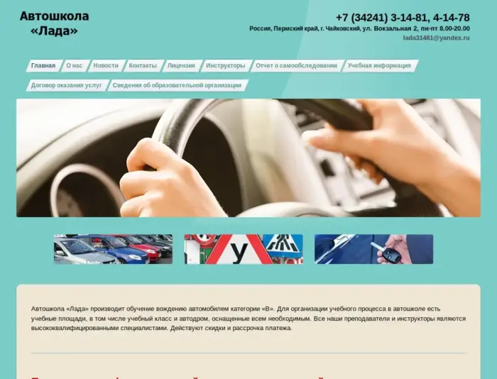 Автошкола «Лада» производит обучение вождению автомобилем категории «В». Для организации учебного процесса в автошколе есть учебные площади, в том числе учебный класс и автодром, оснащенные всем необходимым. Все наши преподаватели и инструкторы являются высококвалифицированными специалистами. Действуют скидки и рассрочка платежа.