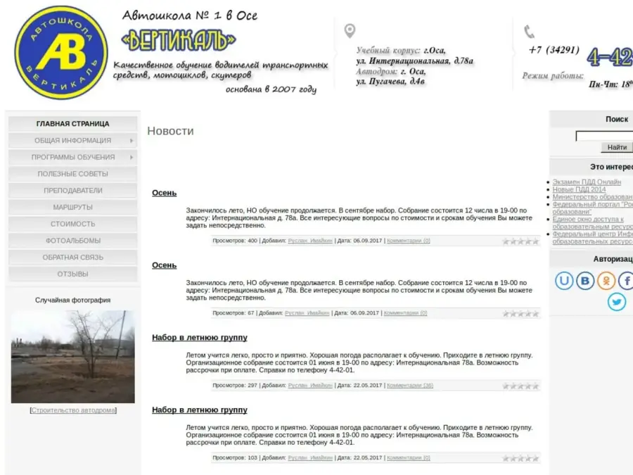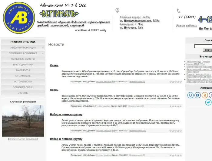 Автошкола "Вертикаль" была основана в марте 2007 года. За это время была проделана колоссальная работа по улучшению качества подготовки будущих водителей. Был построен собственный автодром, который способствует эффективному освоению всех необходимых практических навыков вождения. Учебный корпус автошколы отвечает всем требованиям современных методик обучения и подготовка к сдаче экзаменов в ГИБДД, имеются компьютеры с лицензионным программным обеспечением. Так же есть экран с проектором для вывода и разбора учебной информации. Каждый год автошкола "Вертикаль" выпускает будущих водителей. Статистика сдачи экзамена в ГИБДД показывает, что с первого раза процент сдачи велик 60-75 %, это говорит о большой проделанной работе мастеров производственного обучения. У каждого мастера за плечами более 5 лет стажа в сфере обучения будущих водителей. Наши учащиеся получают прочные знания в изучении Правил Дорожного Движения, Теории безопасного управления автомобилем, и прочные навыки в вождении автомобиля в условиях закрытой площадки (автодрома) и в условиях реального дорожного движения, которые позволяют им безопасно управлять автомобилем в любой ситуации.
