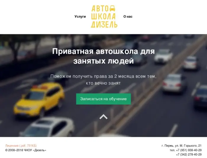 Наша автошкола имеет большой опыт - с 2008 года мы занимаемся подготовкой водителей категории В в городе Пермь. Учебный класс расположен в центре города Перми в очень удобном месте: на перекрестке перекрестке ул. Ленина и ул. М. Горького, рядом с трамвайной остановкой. Класс оборудован компьютером, видеопроектором. Для обучения на занятиях в классе бесплатно предоставляется учебная литература. Бесплатная компьютерная подготовка. Срок обучения 2 месяца. Обучение проходит с одним инструктором на закреплённом за ним учебном автомобиле, на котором курсант сдаёт экзамен в ГИБДД.